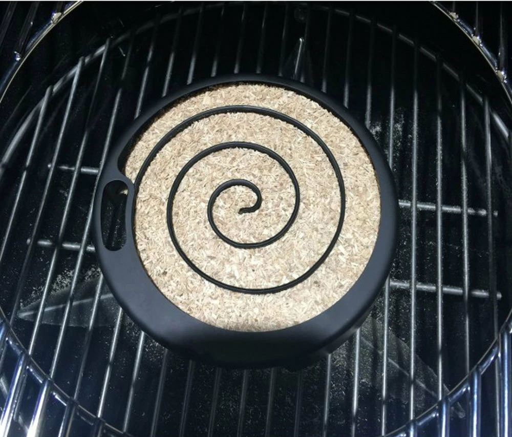 En pocas palabras el polvo de madera para ahumar se quema muy lentamente dentro de la espiral, generando humo durante varias horas.