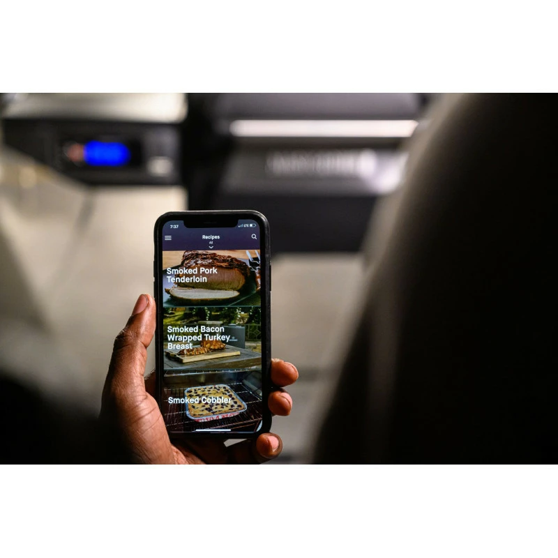 Descarga la aplicación y utiliza el móvil para operar y controlar las características de cocción en tu barbacoa Masterbuilt.