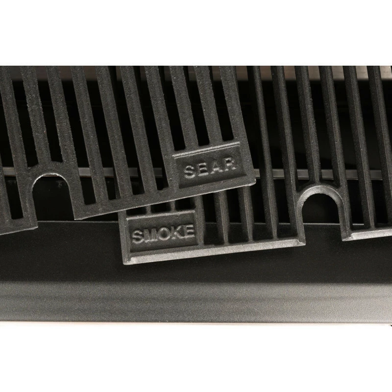 Las parrillas reversibles de hierro fundido pueden alcanzar una temperatura de 107°C en 7 minutos o de 371°C en 13 minutos y son perfectas para asar y ahumar.