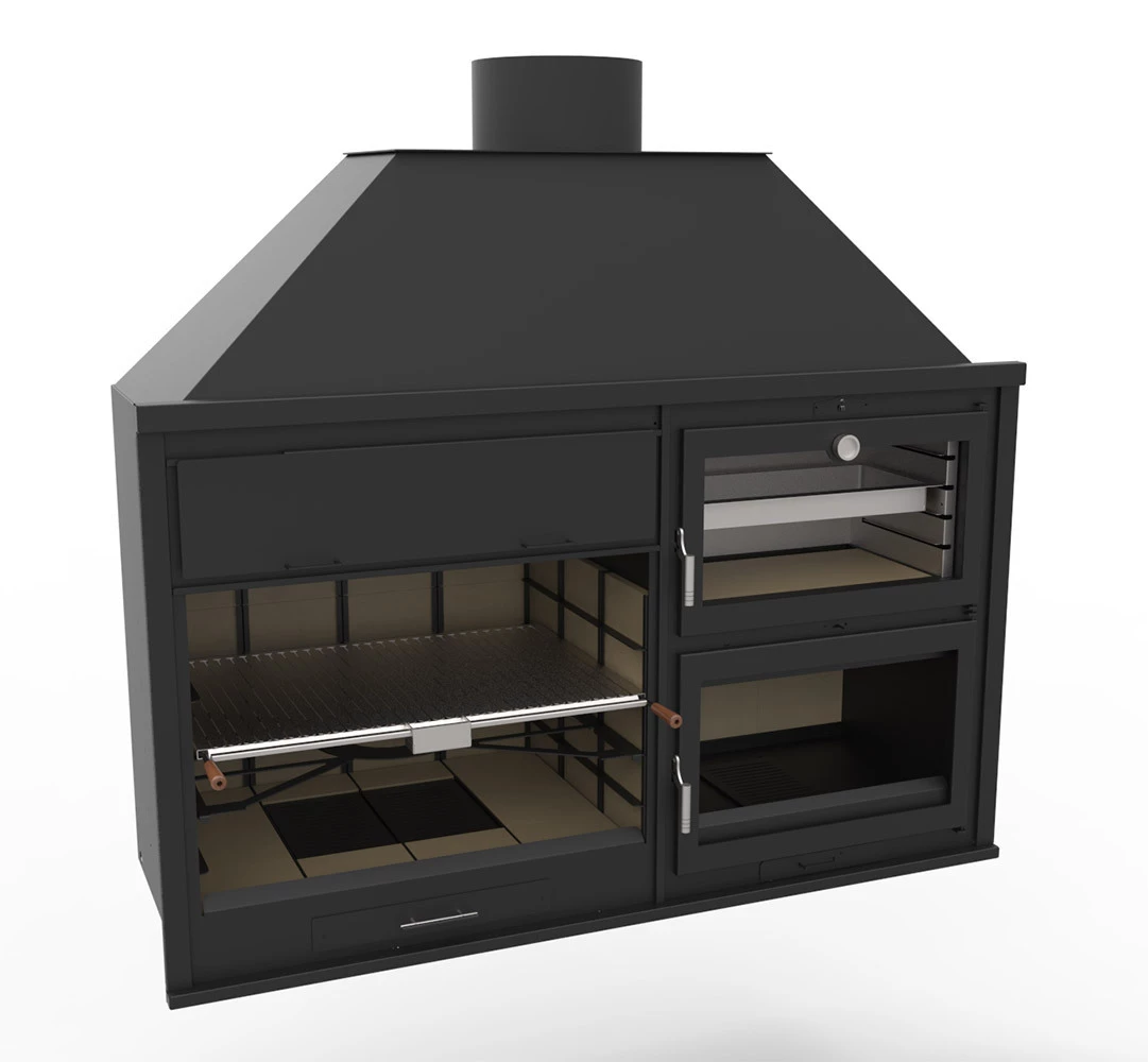 – Parrilla de cocción de Acero Inoxidable tipo Argentina (con varillas en forma de V) y recoge-grasas.