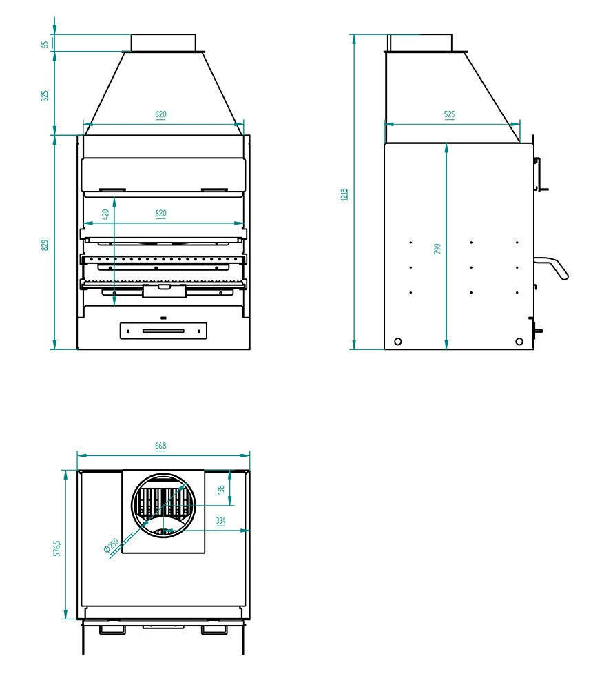 – Medida útil de barbacoa: Ancho 65 x Fondo 57,7 x Alto 44,5 cm.