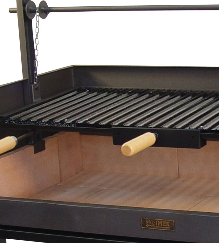 Las barbacoas de Imex El Zorro han sido completamente rediseñadas. Los cambios más relevantes a destacar son: Elegantes ruedas 4×4 para todo tipo de superficie, elevador reversible, manivela extraíble, cuba fabricada en ladrillo refractario de alta resistencia lo que nos permite poder usar leña sin problema.