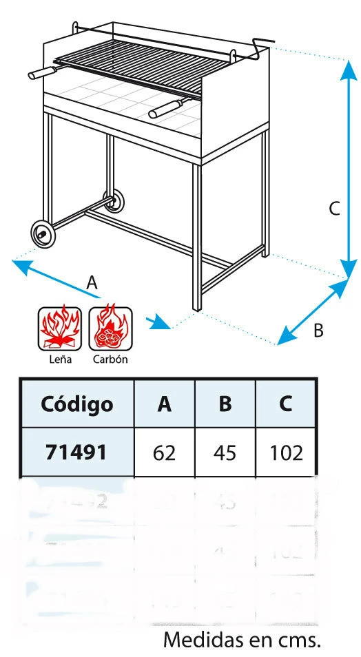 – Combustible recomendado: Leña, Carbón y Briquetas.
