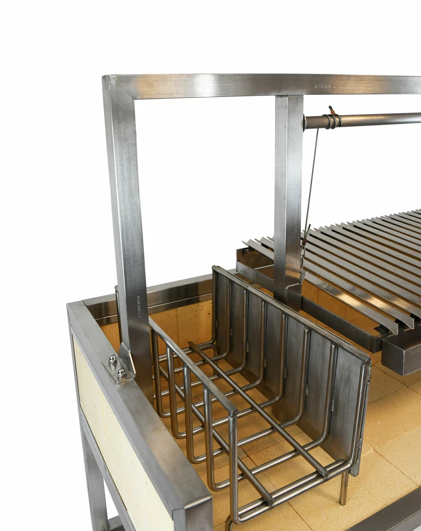 El interior de la Barbacoa Argentina está incrustado con ladrillos refractarios de alta calidad. Los ladrillos producen una excelente radiación de calor para una cocción continua. También evitan que el cuerpo de acero se degrade por el calor extremo de la llama desnuda.