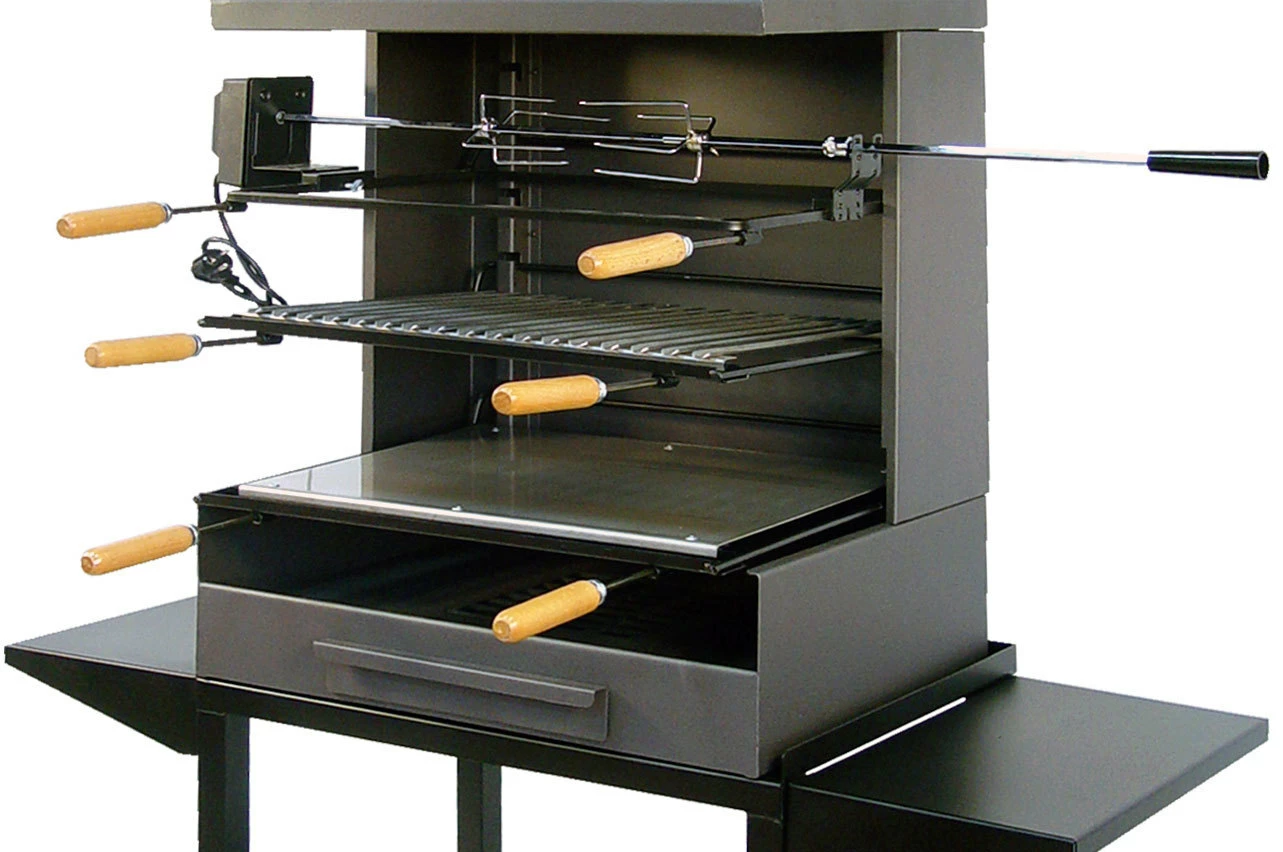 Las barbacoas de Imex El Zorro han sido completamente rediseñadas. Los cambios más relevantes a destacar son: Elegantes ruedas 4×4 para todo tipo de superficie, estantes laterales reforzados de metal, cajón recoge cenizas reforzado, parrilla del hogar de hierro fundido, cuba fabricada en acero de alta resistencia lo que nos permite poder usar leña sin problema.
