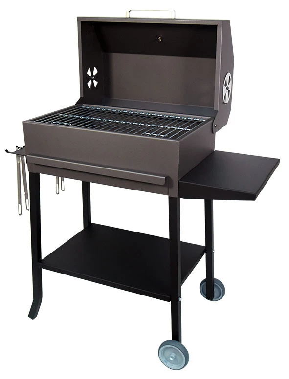 Las barbacoas de Imex El Zorro han sido completamente rediseñadas. Los cambios más relevantes a destacar son: Elegantes ruedas 4×4 para todo tipo de superficie, tapa función horno con termómetro incluido, cajón recoge cenizas reforzado, parrilla del hogar de hierro fundido, cuba fabricada en acero de alta resistencia lo que nos permite poder usar leña sin problema.
