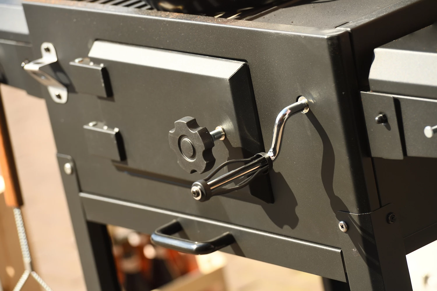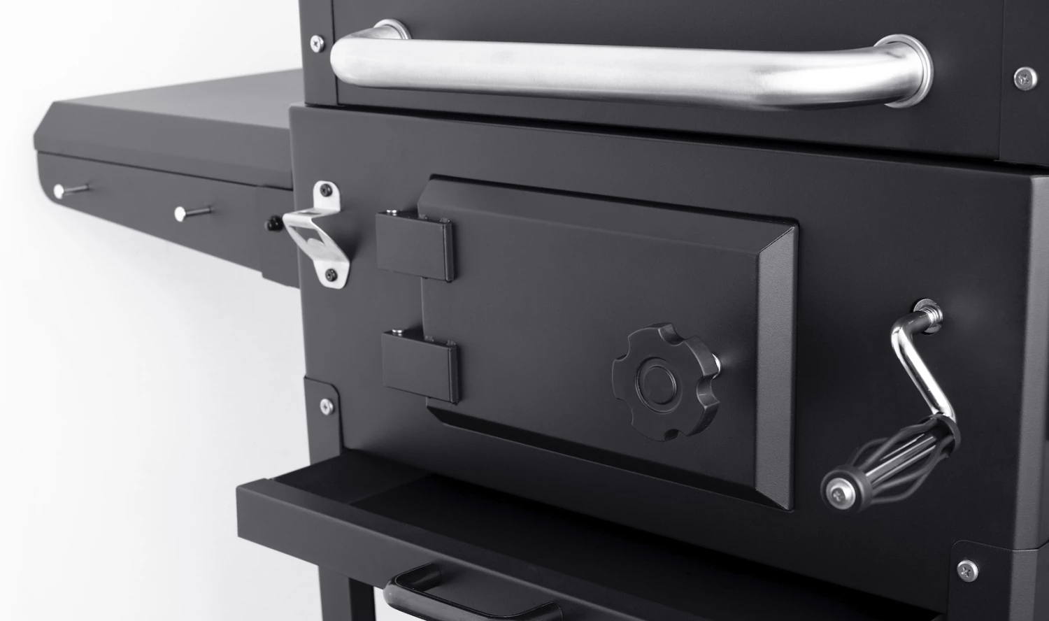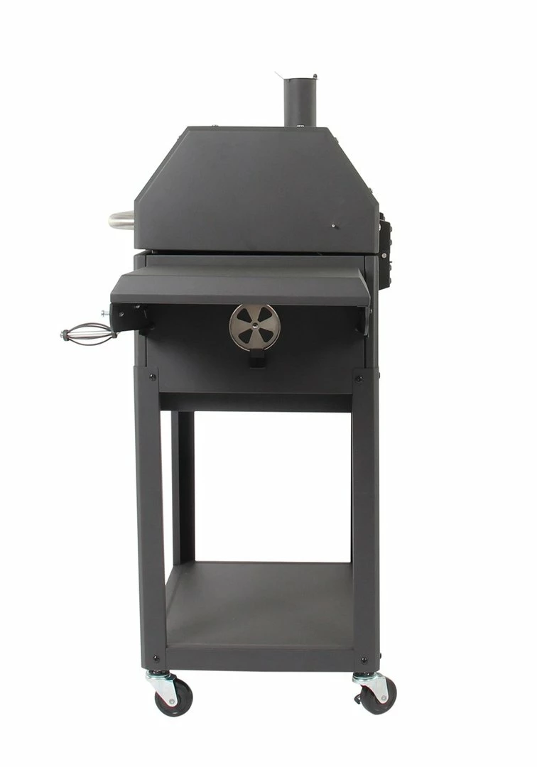 – Bandeja para las brasas ajustable en altura con manivela frontal.