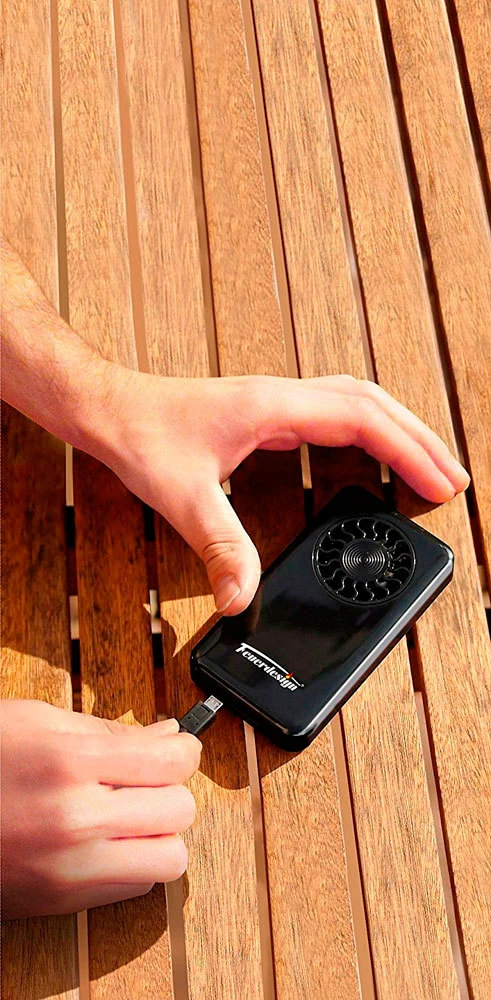 El ventilador Feuerdesign tiene más de 4 horas de autonomía y se recarga muy fácilmente con el cable USB incluido. Simplemente enchúfalo y empieza a cocinar.