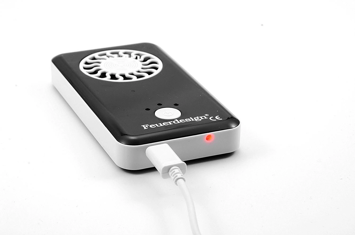 El ventilador Feuerdesign tiene más de 4 horas de autonomía y se recarga muy fácilmente con el cable USB incluido. Simplemente enchúfalo y empieza a cocinar.