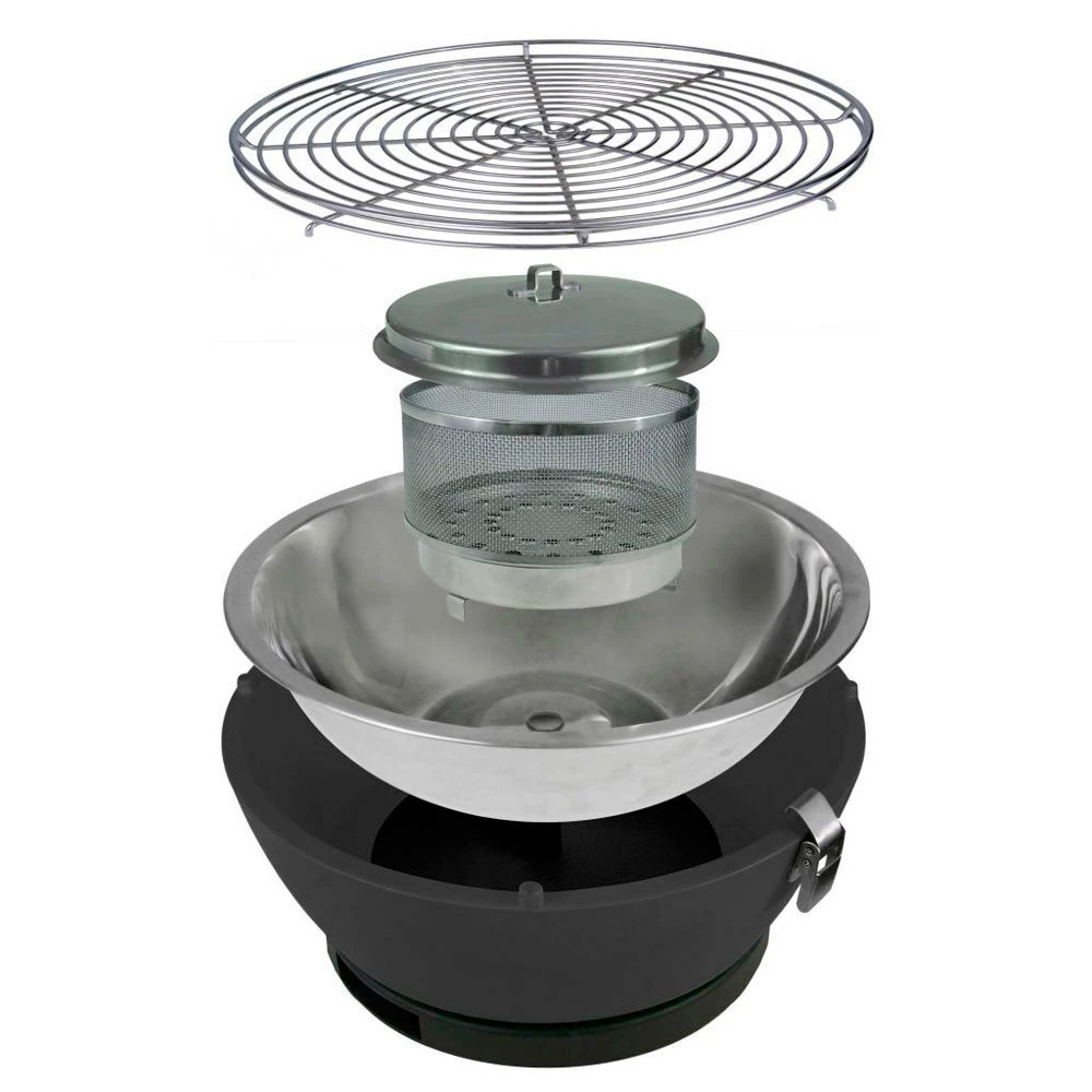 – Cesta de carbón con tapa superior para que el goteo no entre en contacto y no se produzca humo, barbacoa saludable.
