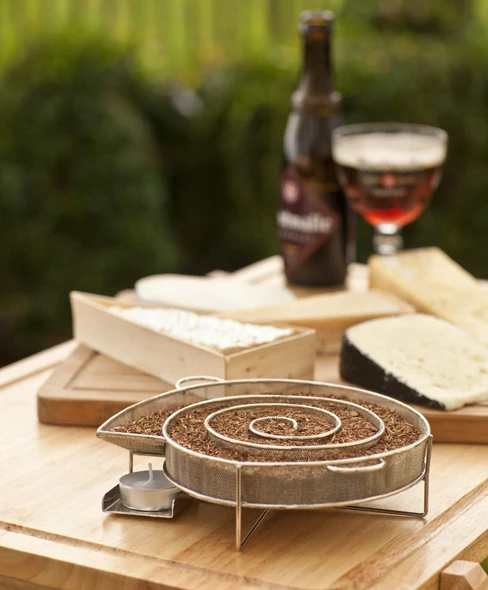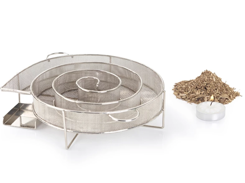 Este generador de humo está diseñado para ahumar en frío pescado, queso, salchichas, carnes, etc. Gracias a su diseño produce un flujo de humo frío de hasta 10 horas de duración sin la necesidad de usar gas ni electricidad, simplemente con el uso de una vela.