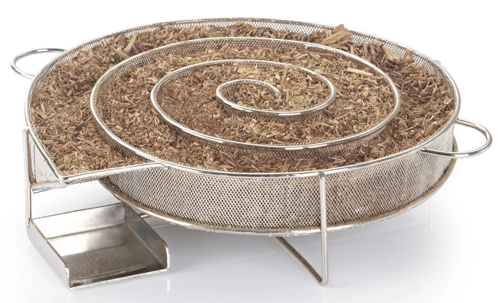 1 – Rellenemos por completo el ahumador con polvo de madera para ahumar. Es importante que el polvo quede completamente nivelado en la parte superior (lo podemos nivelar con la ayuda de una tarjeta)
