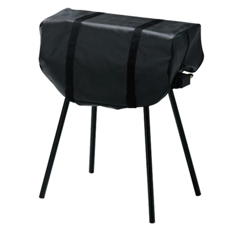 De vinilo negro de alta resistencia, polivalente, sirve tanto para cubrir o para transportar nuestra barbacoa de gas Broil King Porta Chef 100.