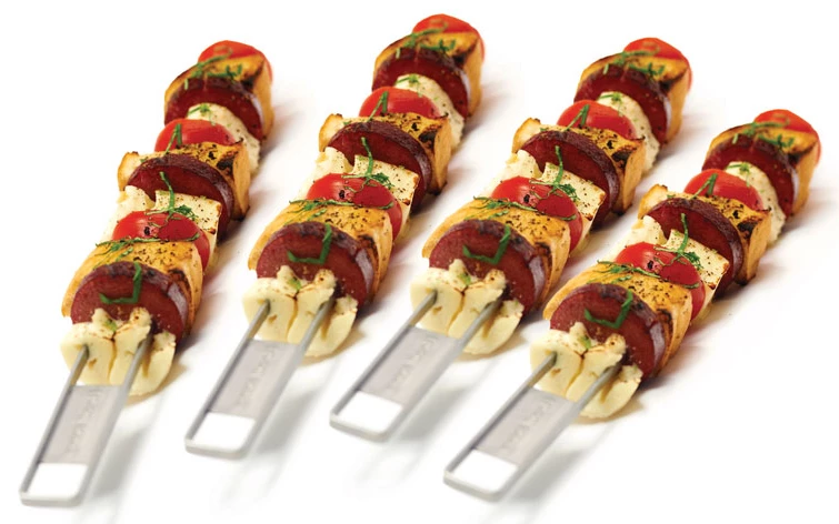 – Las brochetas dobles evitan que los alimentos se muevan de la zona de cocción mientras cocinamos.