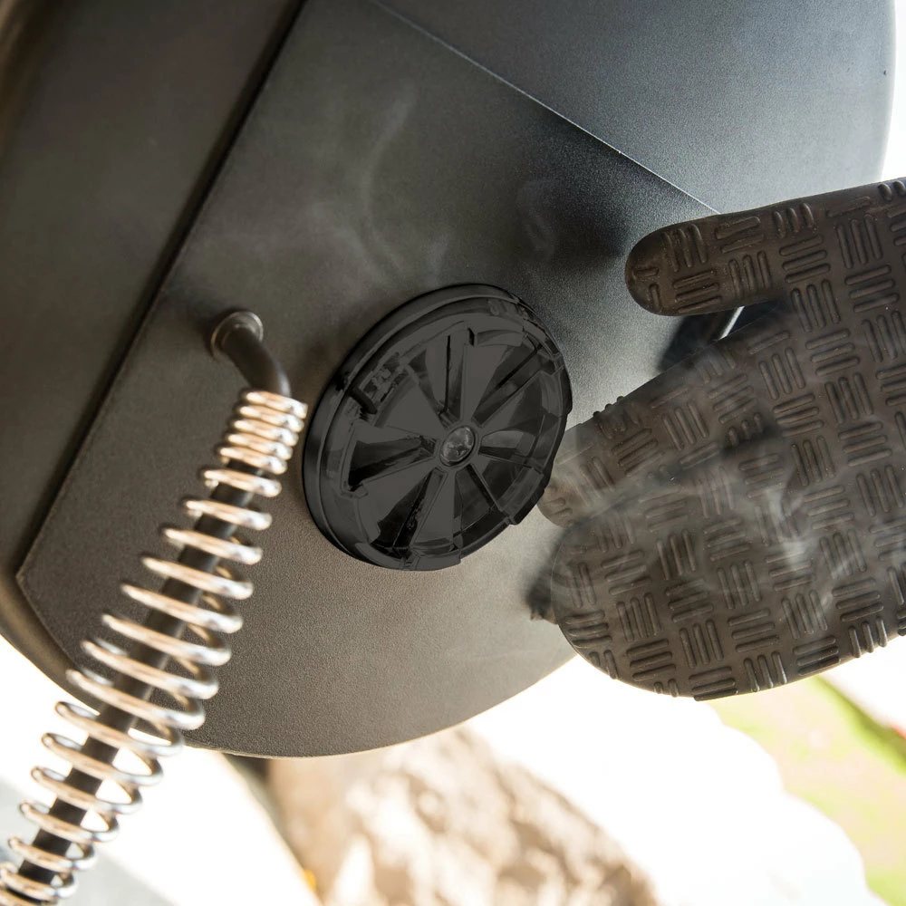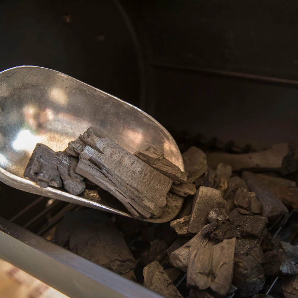 – 2 Bandejas de carbón en la cámara de cocción principal le permiten añadir su mezcla favorita de virutas de madera, carbón o leña fácilmente.