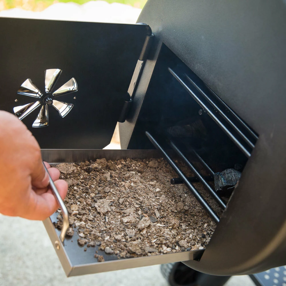 – Cenicero de Acero Inoxidable extraible: Está situado en la cámara de cocción, simplemente abra la puerta lateral y extráigala deslizándola para una limpieza más fácil después de cada uso.