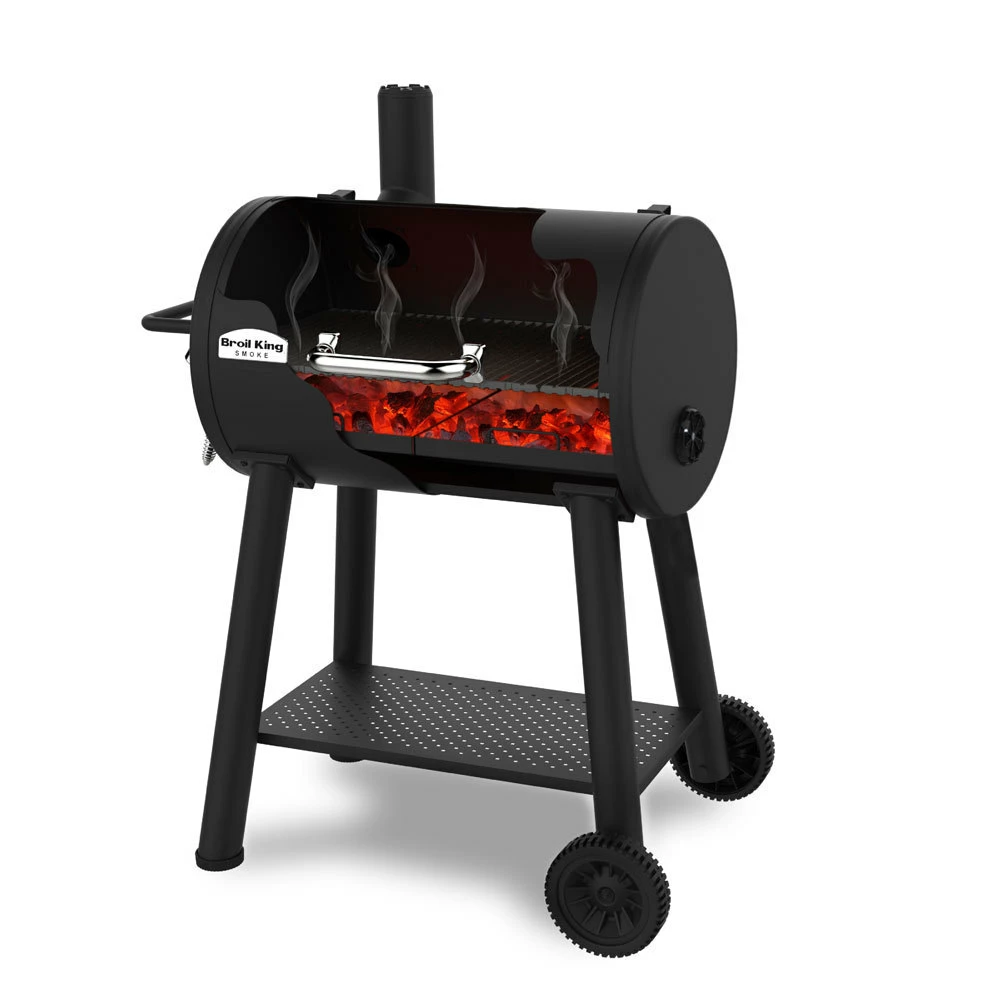 Esta barbacoa y ahumador de Broil King le permite cocinar todas sus comidas favoritas, el control de la temperatura es muy preciso gracias a la tecnología de válvulas de ventilación Roto-Draft, por lo que podremos ajustar fácilmente la barbacoa para que cocine lentamente a baja temperatura y por su puesto también a alta temperatura. El cuerpo y la tapa de la barbacoa esta construido de Acero a partir de 2 mm. de espesor, con una superficie de cocción principal de 81 x 49 cm., las robustas parrillas de cocción son de hierro fundido y hacen que retengan el calor con lo que conseguiremos dorar rápidamente nuestros alimentos, además son reversibles por un lado son canales huecos v y por el otro son en ^ ideal para dorar y marcar alimentos. Las bandejas para el carbón le ayudaran a añadir carbón y leña con facilidad. Un cenicero de Acero Inoxidable extraible para una limpieza más fácil después de cada uso.