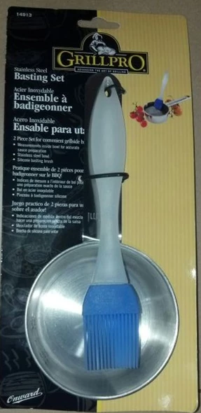 Este set se compone de un pincel de silicona y un recipiente con asa, es ideal par untar fácilmente salsa, aceite, mantequilla, caramelo, nata, huevo, etc.