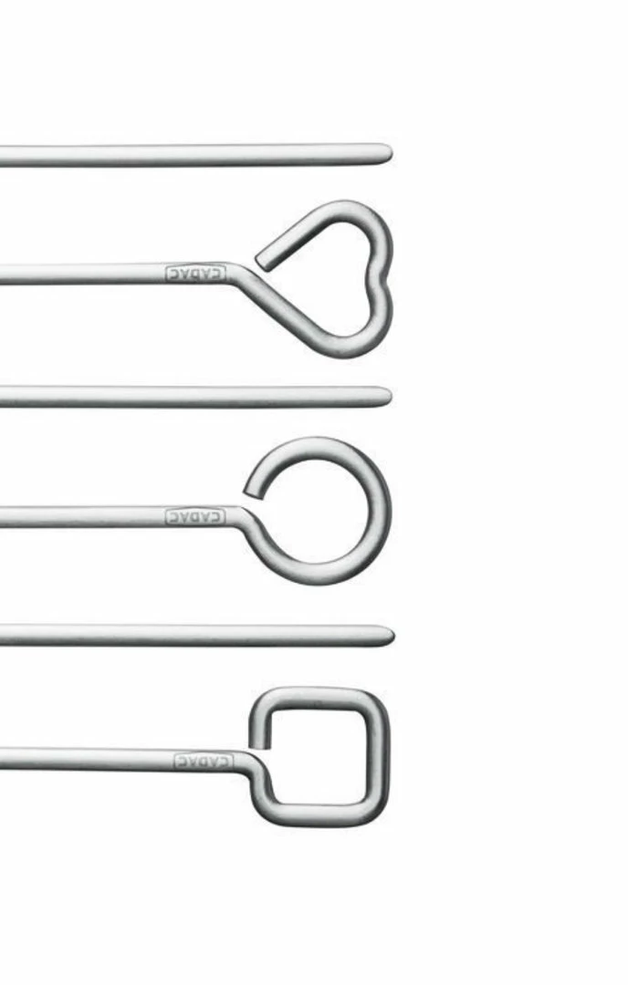 – Conjunto de 6 pinchos de acero inoxidable reutilizables con punta afilada.