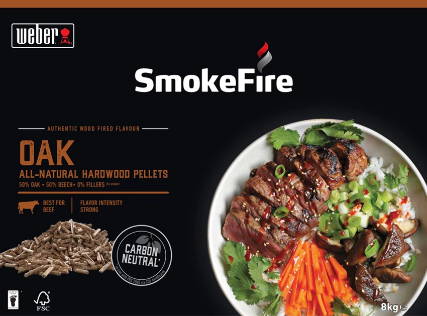 El pellet Weber Roble es ideal para ahumar ternera, cerdo, cordero y carne de caza.
