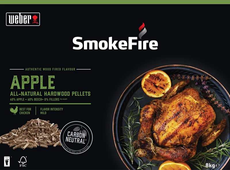 El pellet Weber Manzano es ideal para ahumar ternera, pollo, cerdo y verduras.