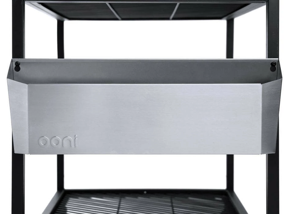 Mantenga sus cervezas frías, guantes y salsa a mano con la caja de utensilios Ooni. El cajón de acero inoxidable ha sido diseñado para combinar con la mesa modular Ooni, aportando comodidad a su cocina exterior.