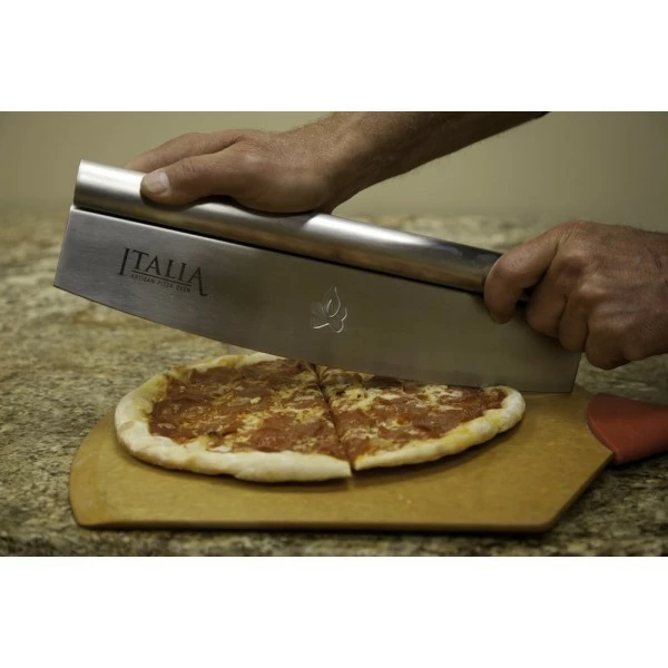 – Un único corte sencillo a dos manos trocea la pizza en porciones perfectas.