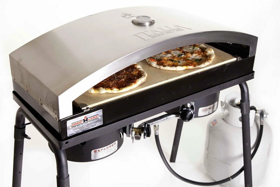 Inspirado por los famosos hornos de piedra italianos, el accesorio horno de Pizza Artisan de Camp Chef cocina la clásica pizza artesana a la perfección. Este galardonado accesorio está diseñado con un techo ovalado, salidas de aire traseras y paredes de doble capa para emular los patrones de calentamiento de un verdadero horno de piedra a leña.