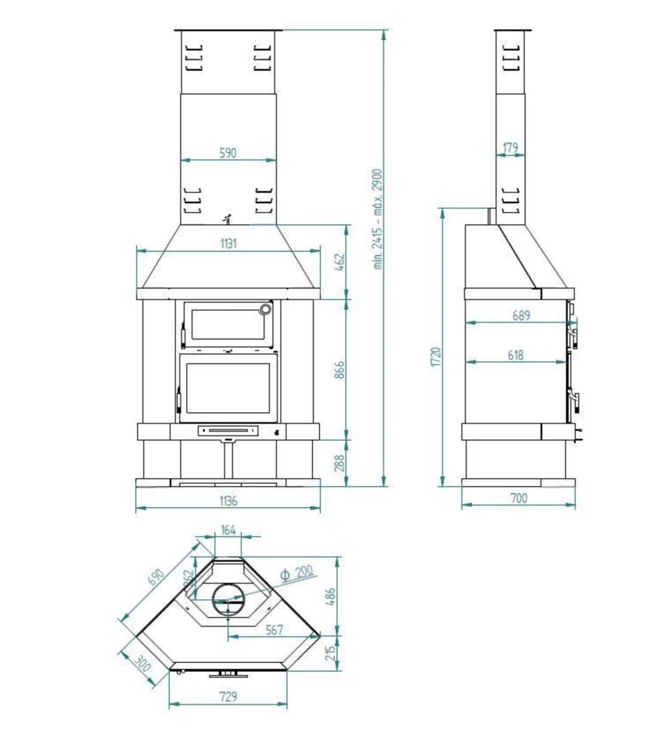 – Boca entrada de leña: 54.5 x 29.5 x 35 cm.
