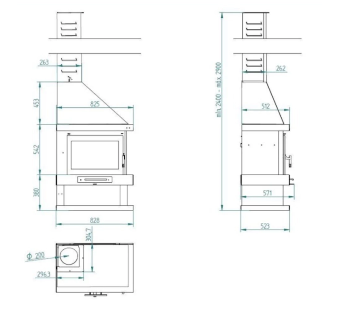 – Boca entrada de leña: 54.5 x 29.5 x 35 cm