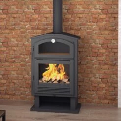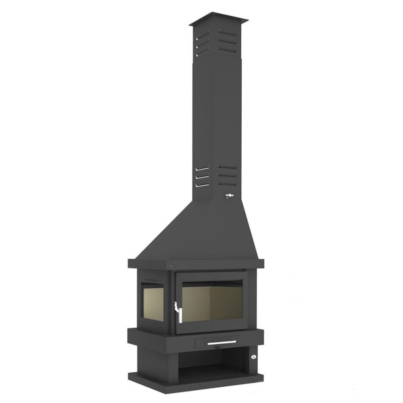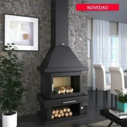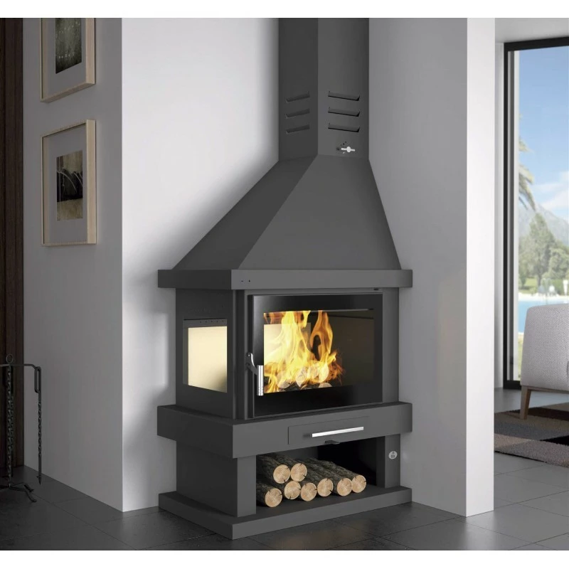 Diseño clásico con leñero, en el que se ha conseguido un gran aprovechamiento de su poder calorífico.