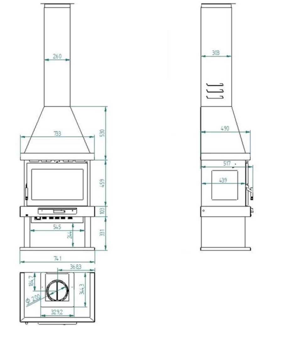 – Boca entrada de leña: 54.5 x 29.5 x 35 cm