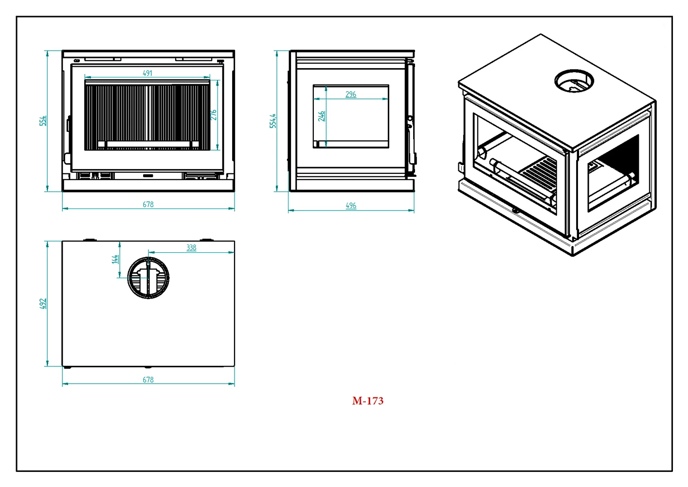 – Boca de entrada leña: 550 x 300 x 380 mm.