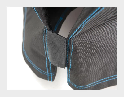 – Fabricada en poliester de alta densidad con una capa de pvc resistente al agua, con ventilacion para evitar condensaciones y correa para tener un ajuste maximo, bordado en azul que ademas de darle estilo, refuerza la capa, mangos de goma para una mayor comodidad a la hora de retirarla.