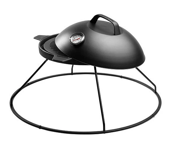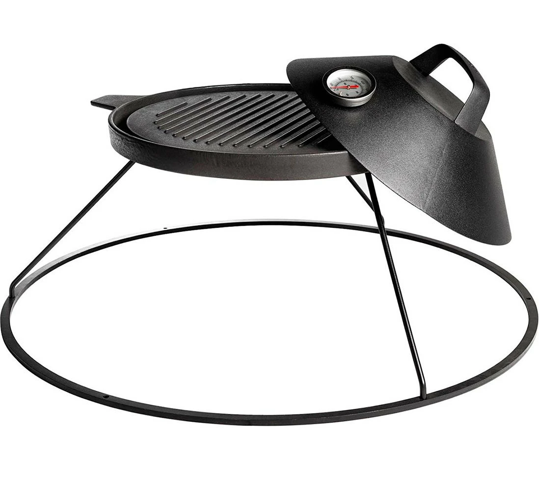 Con este Grill ya puedes cocinar en tu Brasero de Gas de Jardín grande, simplemente retirando los troncos cerámicos y colocando el trípode sobre la llama.