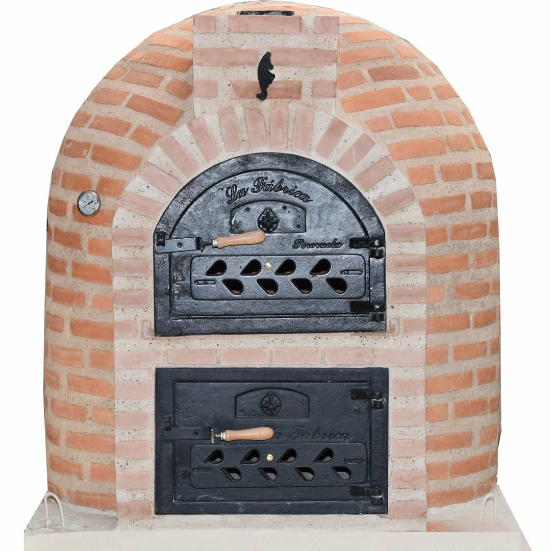 El modelo Hornilla redonda ladrillo se caracteriza por su sencillez, y está terminado con ladrillos refractarios, manteniendo su esencia artesana y un acabado rústico y tradicional. La construcción se apoya sobre una base de hormigón armado.