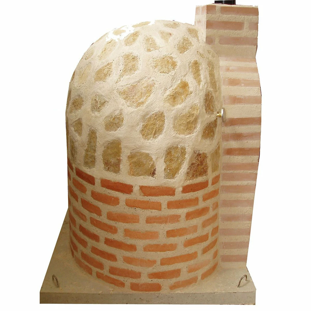 El modelo Hornilla redonda Mixta Piedra se caracteriza por su sencillez, y está terminado en piedra de cantera natural en la parte de la cúpula y de ladrillos refractarios en la parte de la hornilla, manteniendo su esencia artesana y un acabado rústico y tradicional. La construcción se apoya sobre una base de hormigón armado.
