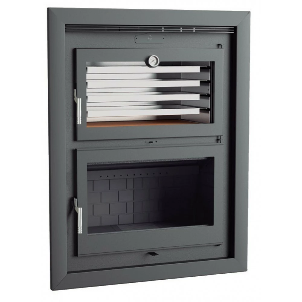 Diseño clásico, en el que se ha conseguido un gran aprovechamiento de su poder calorífico. Gracias a su hogar, recubierto de ladrillo refractario y su doble cuerpo que realiza la función de un convector natural de aire.