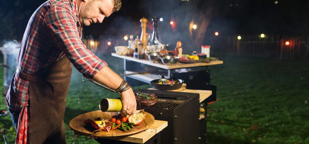 El Horno Multifunción Corten Negro es el compañero perfecto del maestro culinario, podrá transformarlo en cualquiera de sus cinco funcionalidades, en un abrir y cerrar de ojos, dispondrá tanto de un horno como de un ahumador, una barbacoa, un teppanyaki e inlcuso una hermosa chimenea de exterior.