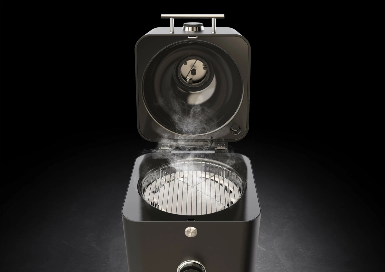 Mantenga el control total gracias a un sistema de sonda de alimentos totalmente integrado que transmite información de cocción en tiempo real a la pantalla de control digital y también a su teléfono (a través de una aplicación conectada por Bluetooth). Una pantalla de vidrio táctil le permite encender carbón o astillas de madera automáticamente y cambiar la configuración fácilmente.