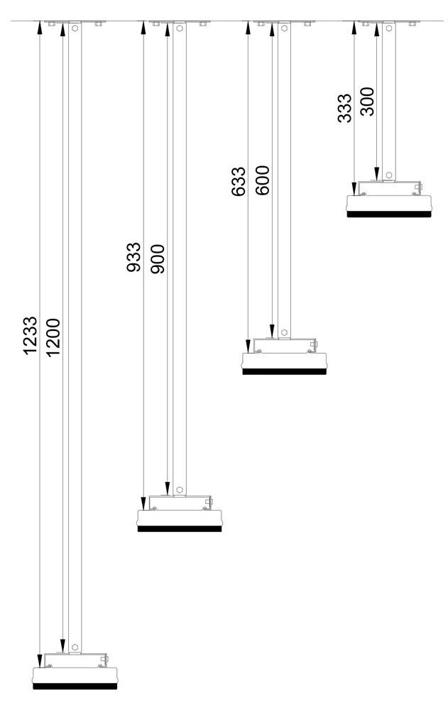 El kit de extensión permite disminuir la altura de los Heatstrips Elegance THE de techos altos usando conexiones rígidas.