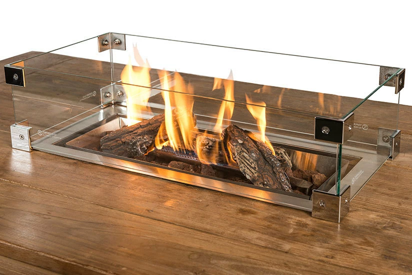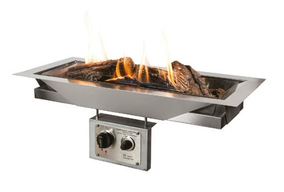 El responsable de la gran potencia calefactora de este brasero es su quemador de Acero Inoxidable de 6,5 kW. Dicho quemador queda camuflado bajo los troncos de madera cerámica y las piedras volcánicas ya incluidas.