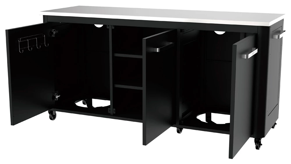 Las zonas inferiores se pueden utilizar de almacenaje o para colocar una botella de gas. La puerta central tiene baldas perfectas para tener todo ordenado y a mano.