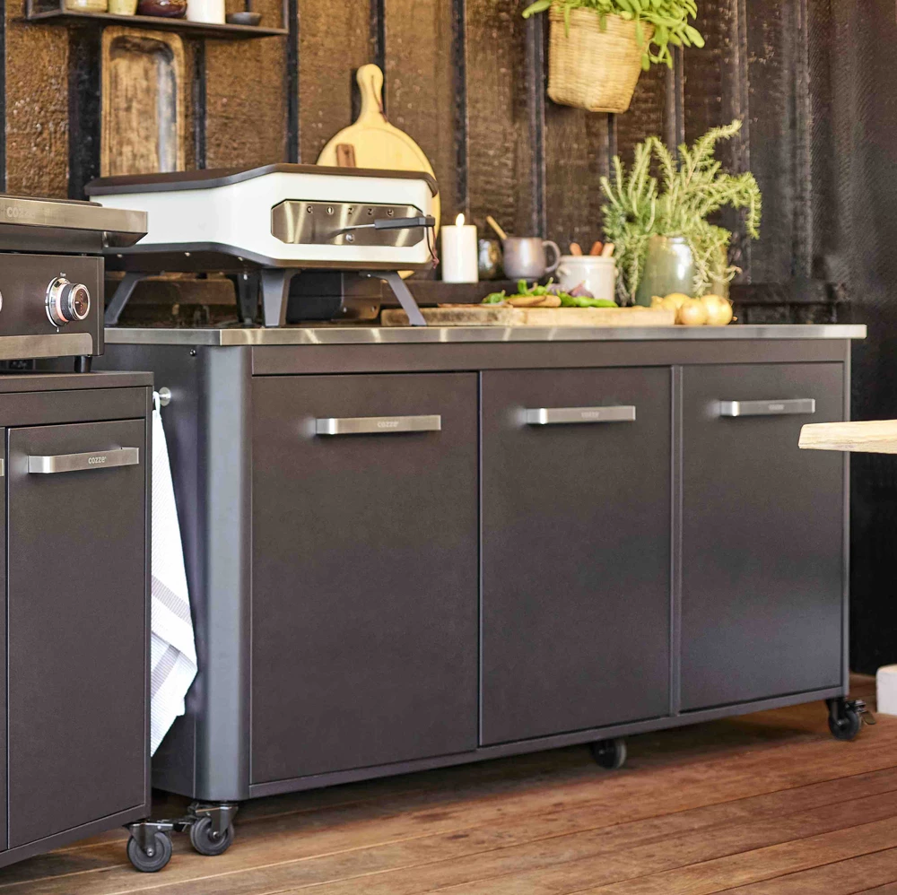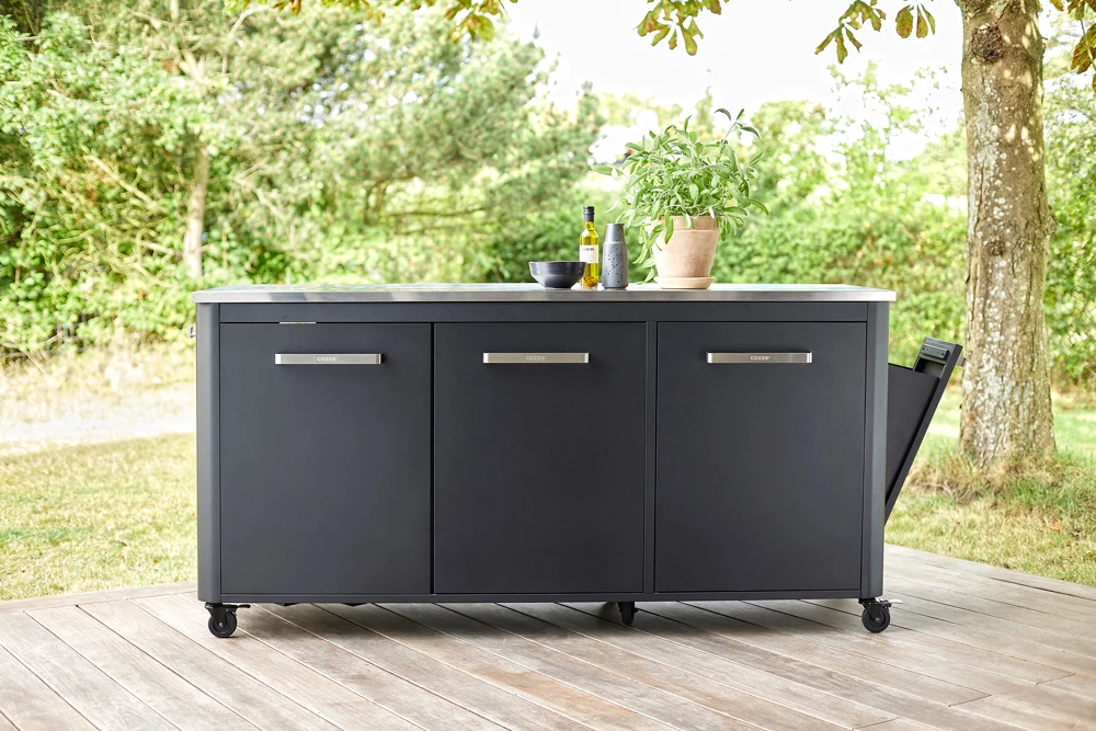 La mesa de exterior Cozze de tres módulos con tres puertas está hecha para completar el mobiliario de tu patio, terraza, balcón o jardín. Cozze ha combinado los mejores materiales para que puedas cumplir tus sueños culinarios con mucha elegancia.