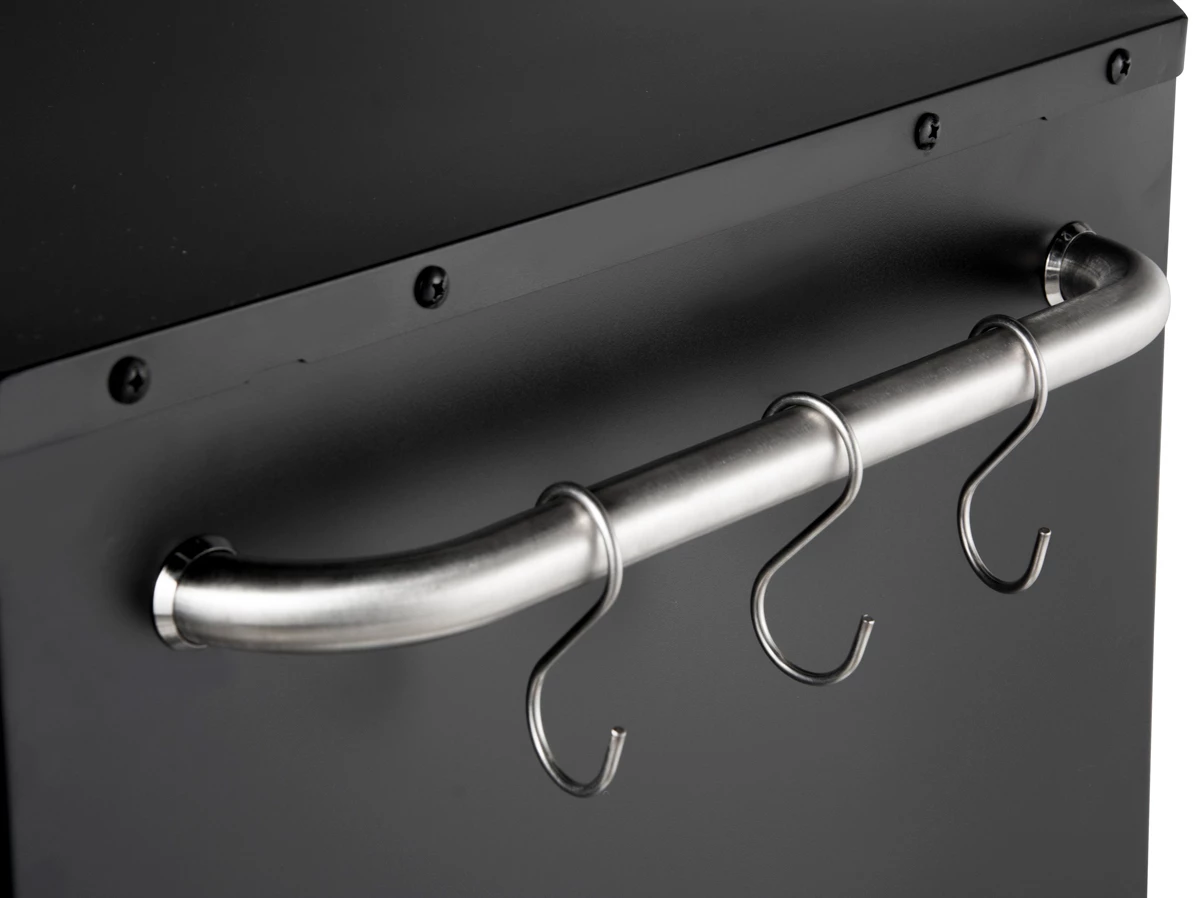Cuenta con dos barras de acero inoxidable para colgar utensilios y 6 ganchos de acero inoxidable.