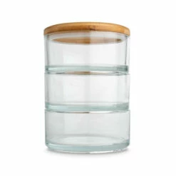 – 3x boles de cristal con tapa de bambú y junta extraíble.