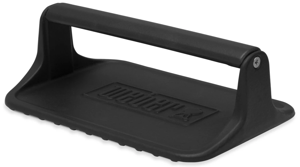 La prensa para carne o para hamburguesas de hierro fundido Weber tiene dos fantásticas funciones, pues la puede usar como pesa sobre la carne en la barbacoa asegurando así excelentes marcas de sellado o como prensa para hamburguesas.