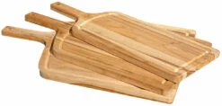 Sirva su comida con estilo en las tablas para servir Ofyr. Este set incluye 3 tablas de alta calidad hechas de teca. Las tablas tienen un mango largo que es cómodo de sostener.