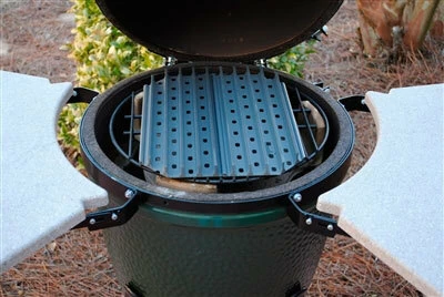 Este modelo de GrillGrate se compone de 2 piezas de 34,92 x 13,34 cm. (Fondo x Ancho) y encaja perfectamente en el modelo de barbacoa Green Egg mediano, y en cualquier modelo de 38 cm. de diámetro.