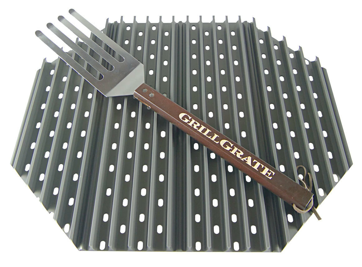 Gracias a la enorme variedad de medidas de GrillGrate, podrá encontrar parrillas para modelos específicos de marcas líder en el mundo tales como Weber, Cobb, Char-Broil, Kamados como Green Egg, y para muchas otras barbacoas convencionales redondas y rectangulares de gas, carbón, y pellet. Esto significa que la parrilla GrillGrate podrá apoyar directamente sobre su barbacoa, y no encima de su parrilla actual, ahorrando en tiempo de cocción, y por lo tanto, en consumo.